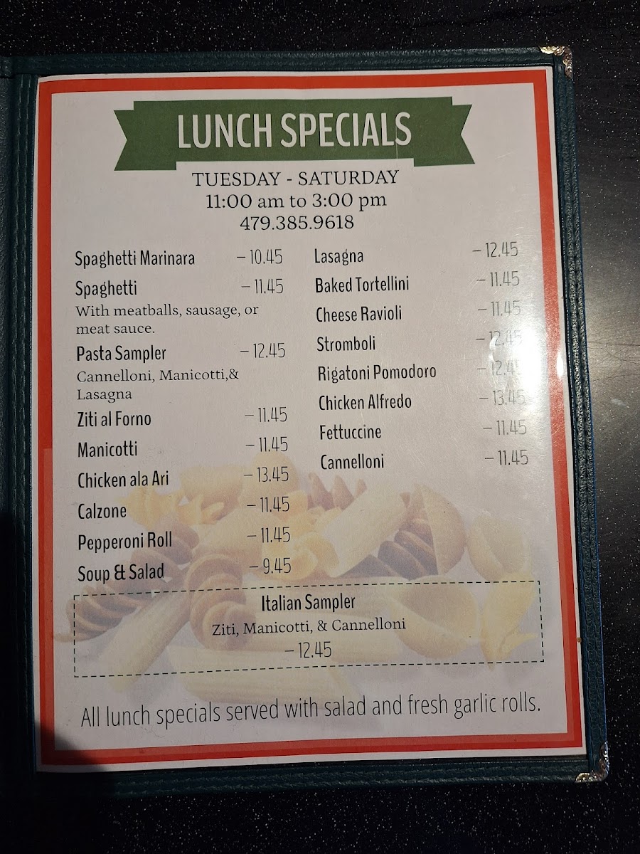 Welcome to Little Italy II, a delightful culinary gem nestled in Mena, Arkansas. This charming eatery offers a medley of Italian comforts that are sure to tantalize your taste buds. Start with their Chicken Noodle Soup or the flavorful Minestrone, both priced at a reasonable $7.95. For seafood lovers, the Seafood Alfredo featuring succulent shrimp, scallops, and crab over fettuccine is a must-try at $23.95. Don’t miss out on the handmade rolls like the Calzone or Stromboli, perfect for sharing.